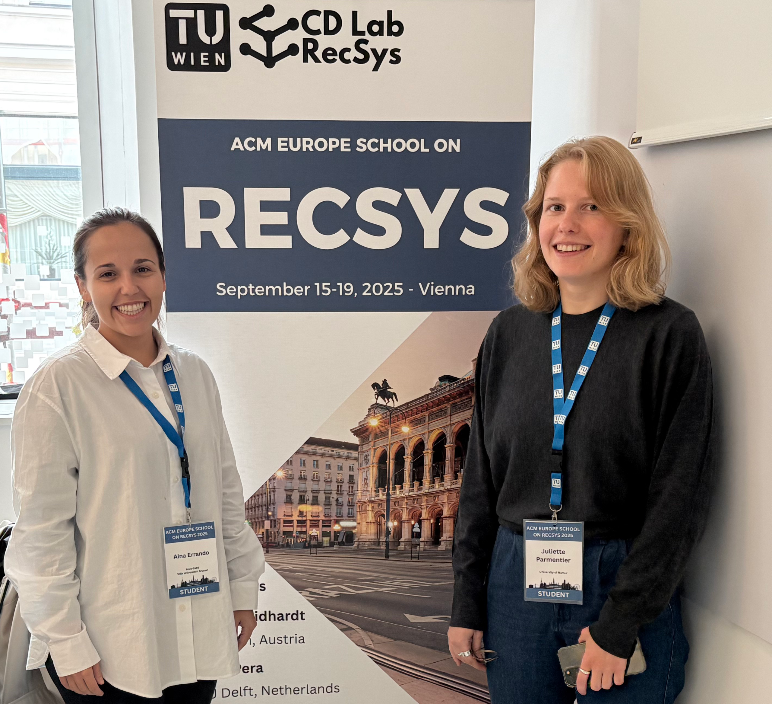 Aina Errando (imec-SMIT, Vrije Universiteit Brussel) and Juliette Parmentier (ReSIC and NADI), both part of the ALGEPI project, attended the ACM Europe School on Recommender Systems in Vienna, hosted by the CD RecSys Lab at TU Wien from the 15th to the 19th of September.